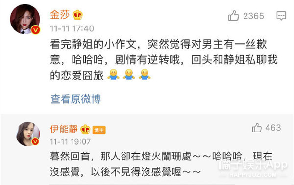 因为金莎在伊能静为自己发的爱情微博下评论: