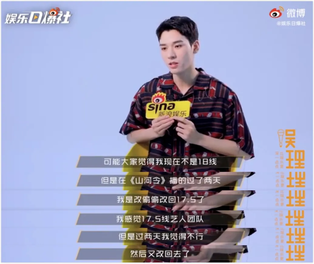 他十分造次的把18线艺人,改成了17.5线。 结果冷静了几天,又改回去了。