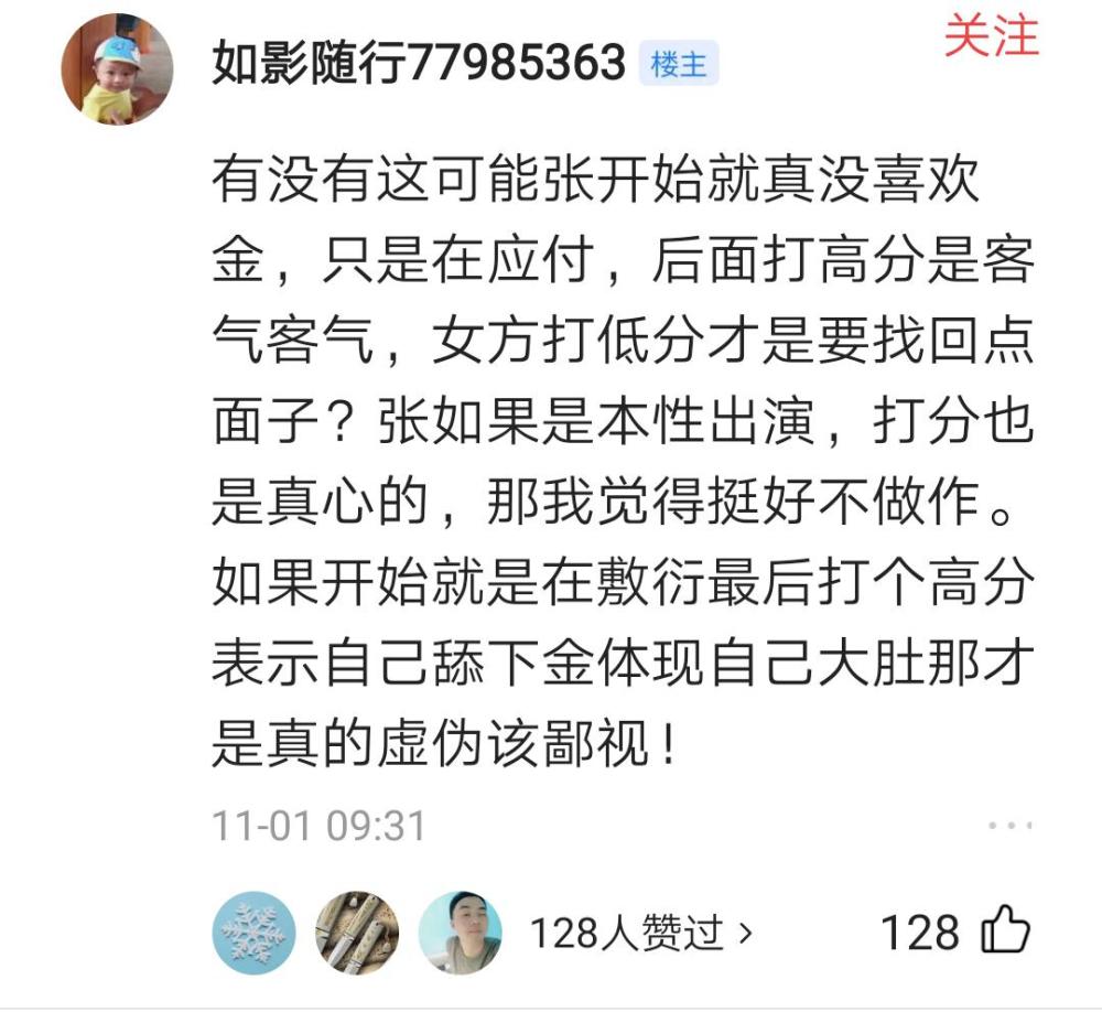 结果,我当时吐槽张继科相亲表现得不好,还有人挽尊,说张继科也许是没看上金晨,后面给金晨打了90多分的高分,可能只是为了给女生面子……