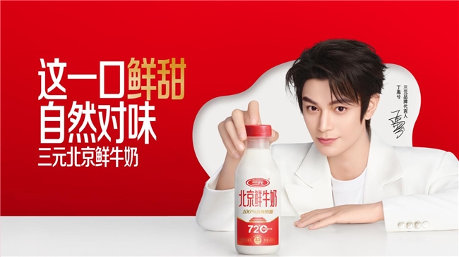 丁禹兮凭借在多部热门影视作品中的表现,积累了广泛的国民认知度,其个人形象中“清爽、真诚、亲和、努力”的标签,与三元北京鲜牛奶“100%自有奶源”所代表的真诚品质,以及“T+0模式”所诠释的鲜活属性高度契合。在品牌TVC中,他以真实用户的视角诠释“喝的就是一个鲜”,将产品主张转化为年轻人熟悉的“分享式”表达,既延续了三元的品质基因,也消弭了传统乳业品牌与年轻群体之间的沟通隔阂。